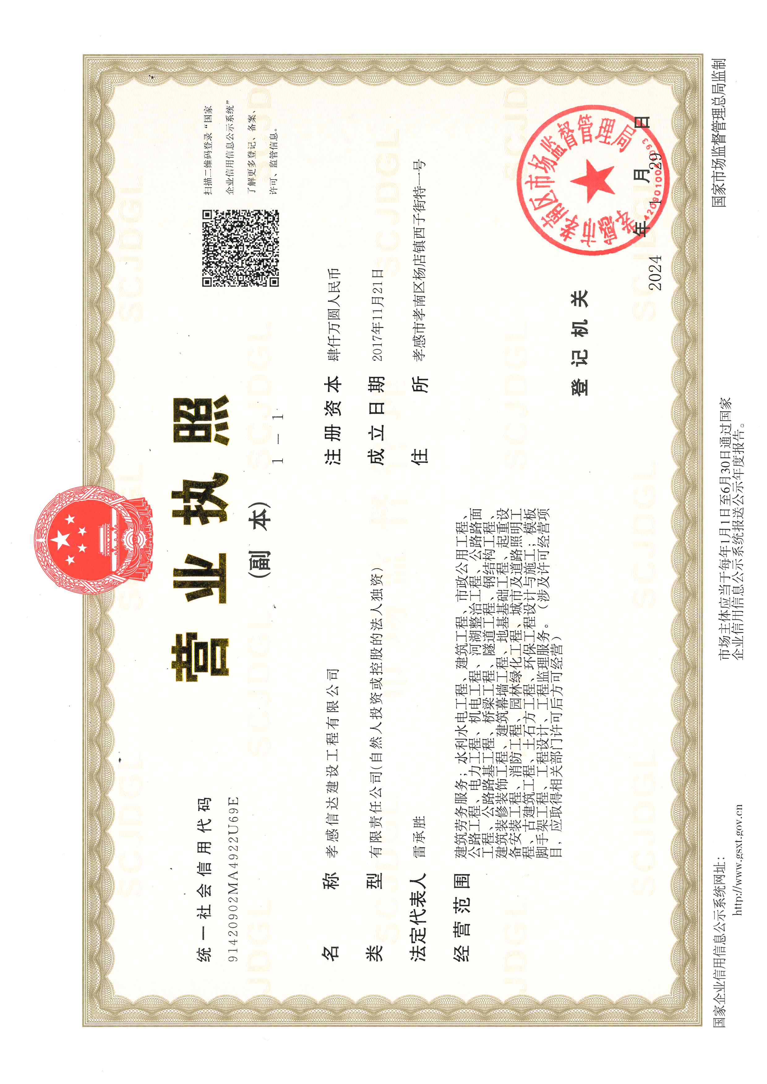 我公司擁有市政公用工程施工總承包貳級、環保工程專業承包貳級及水利水電工程施工總承包貳級資質,經營范圍:建筑勞務服務;水利水電工程、建筑工程、市政公用工程、公路工程、電力工程、機電工程、河湖整治工程、公路路面工程、公路路基工程、橋梁工程、隧道工程、鋼結構工程、建筑裝修裝飾工程、建筑幕墻工程、地基基礎工程、起重設備安裝工程、消防工程、園林綠化工程、城市及道路照明工程、古建筑工程、土石方工程、環保工程設計與施工;模板腳手架工程、工程設計、工程監理服務等。